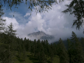 ....und rechts den Wegweisern ' Hohe Munde ' folgend bis zum Abzweig links ' Hinteregger / Alplhütte '. Über diesen Steig teilweise etwas abwärts ...